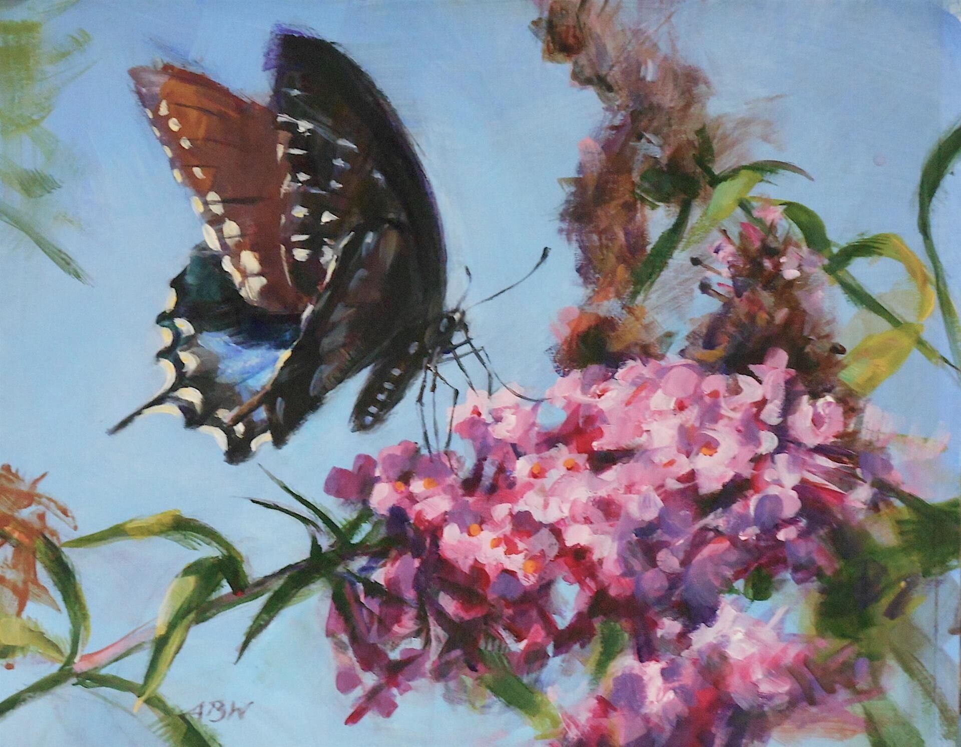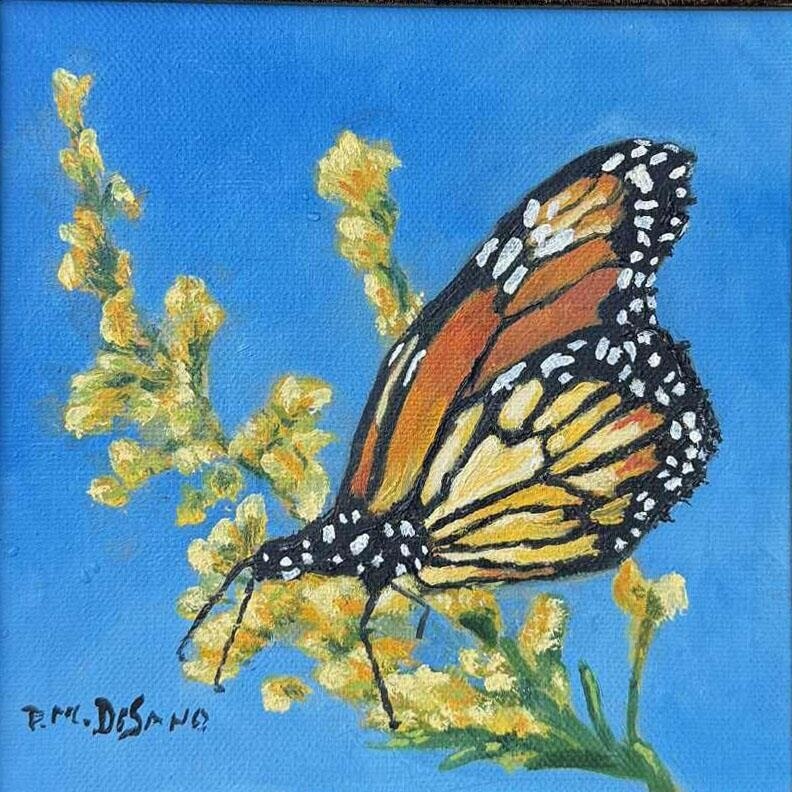 Paula DeSano Santos, Butterfly in Blue, Oil, 6×6, $50
