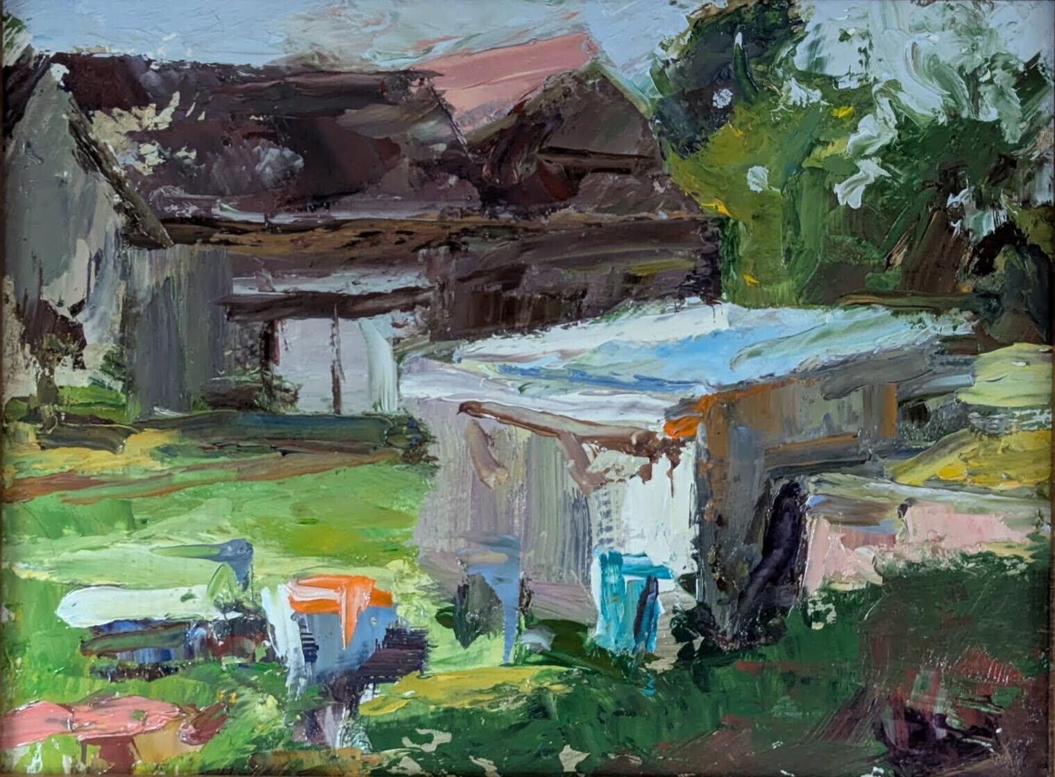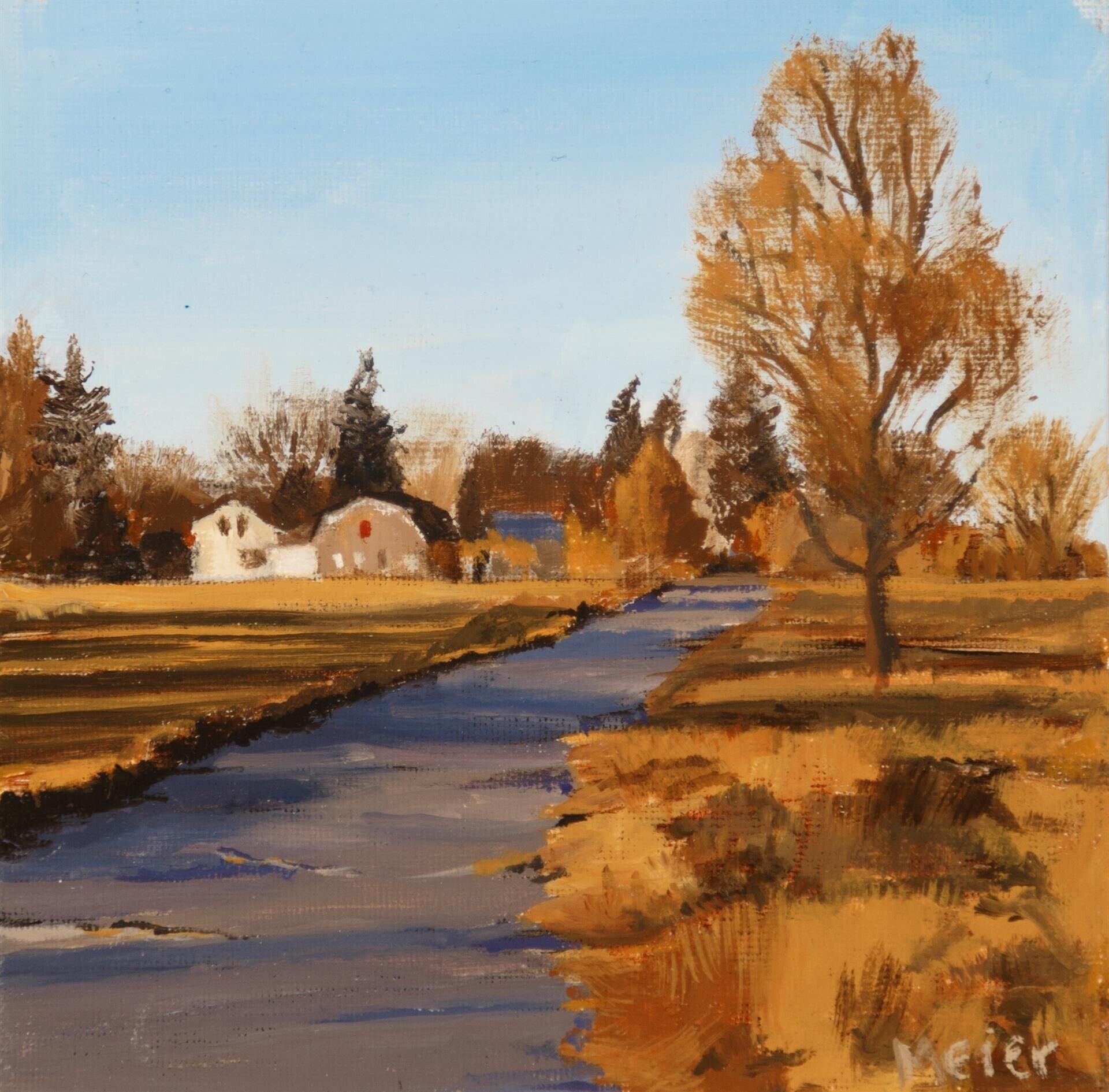 Barbara Meier, Afternoon Shadows at the Farm, Oil, 6×6, $175