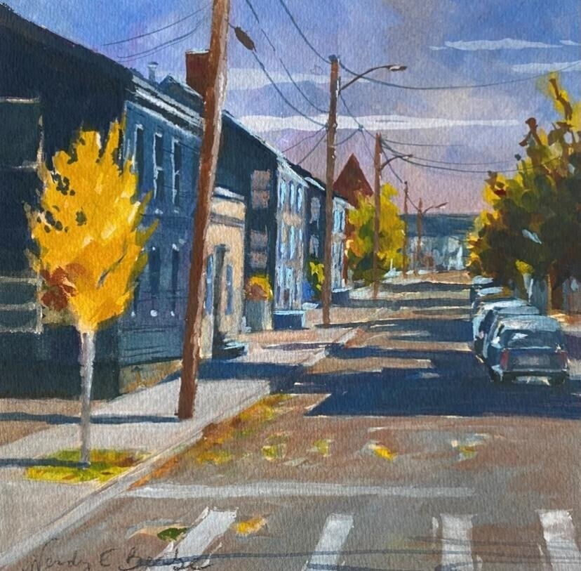 Wendy Berube, Church St, Gouache, 12x12x1, $200
