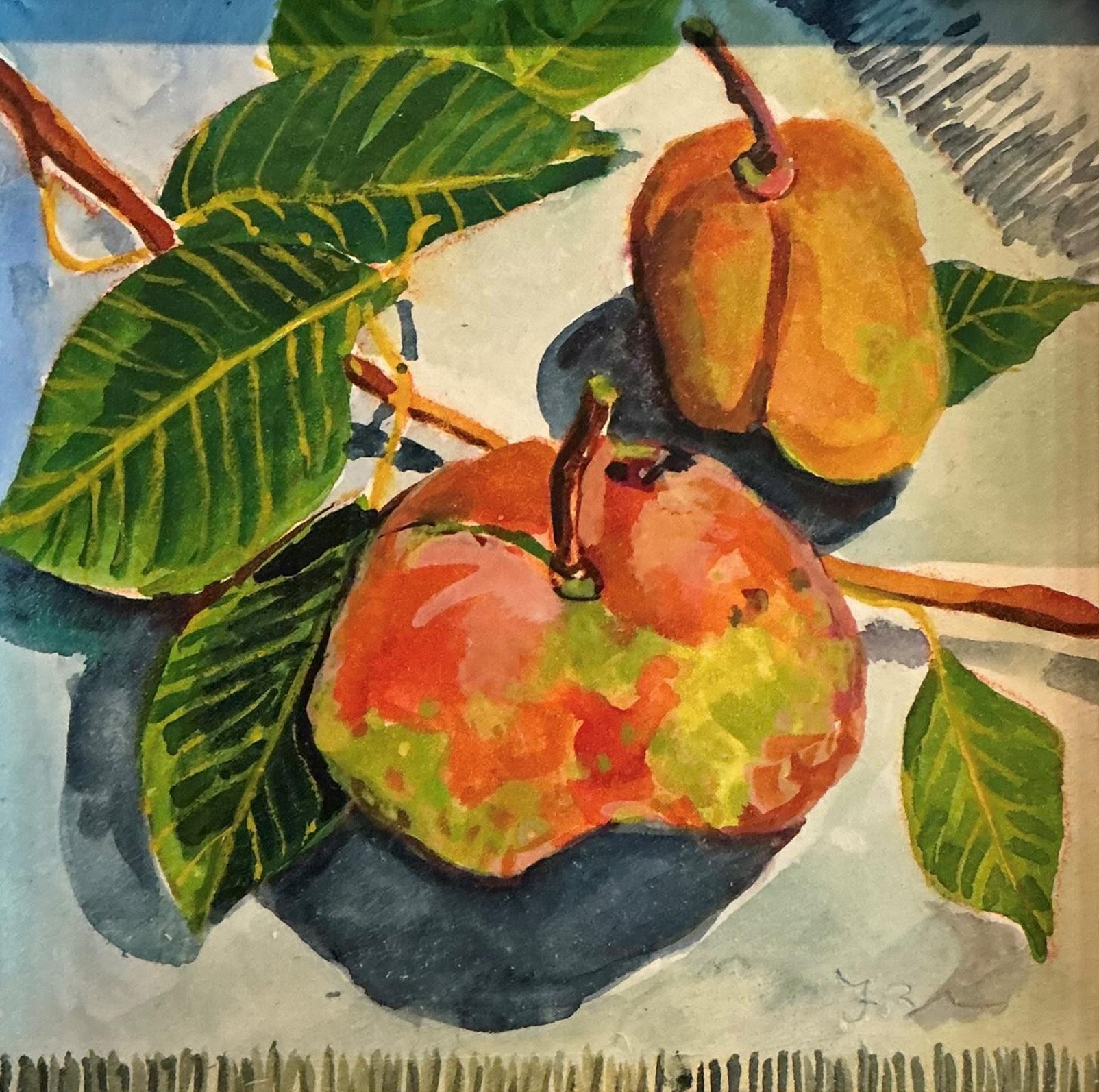 Lisa Bliss, Two Pears, Gouache, 7x7x1,$100, SOLD