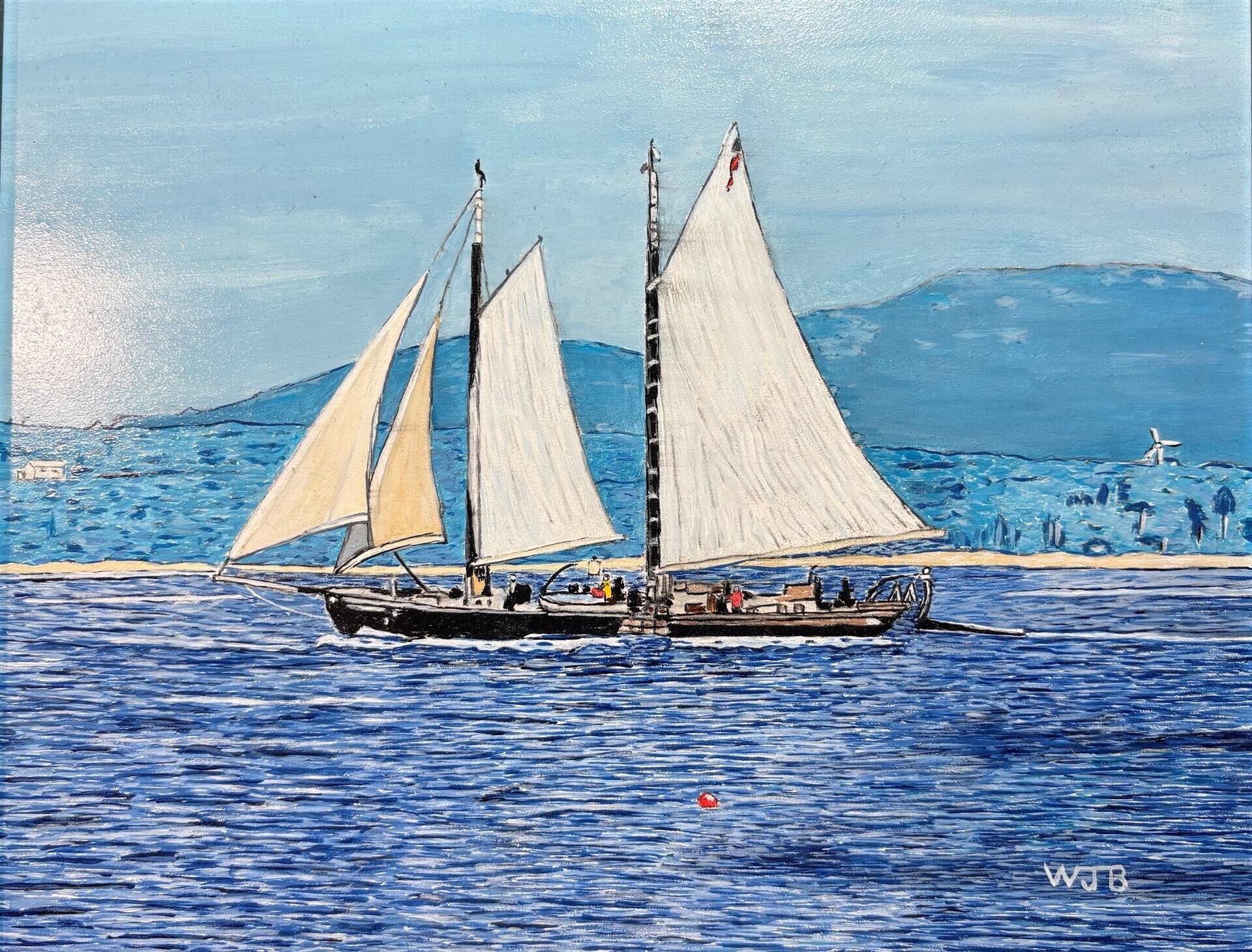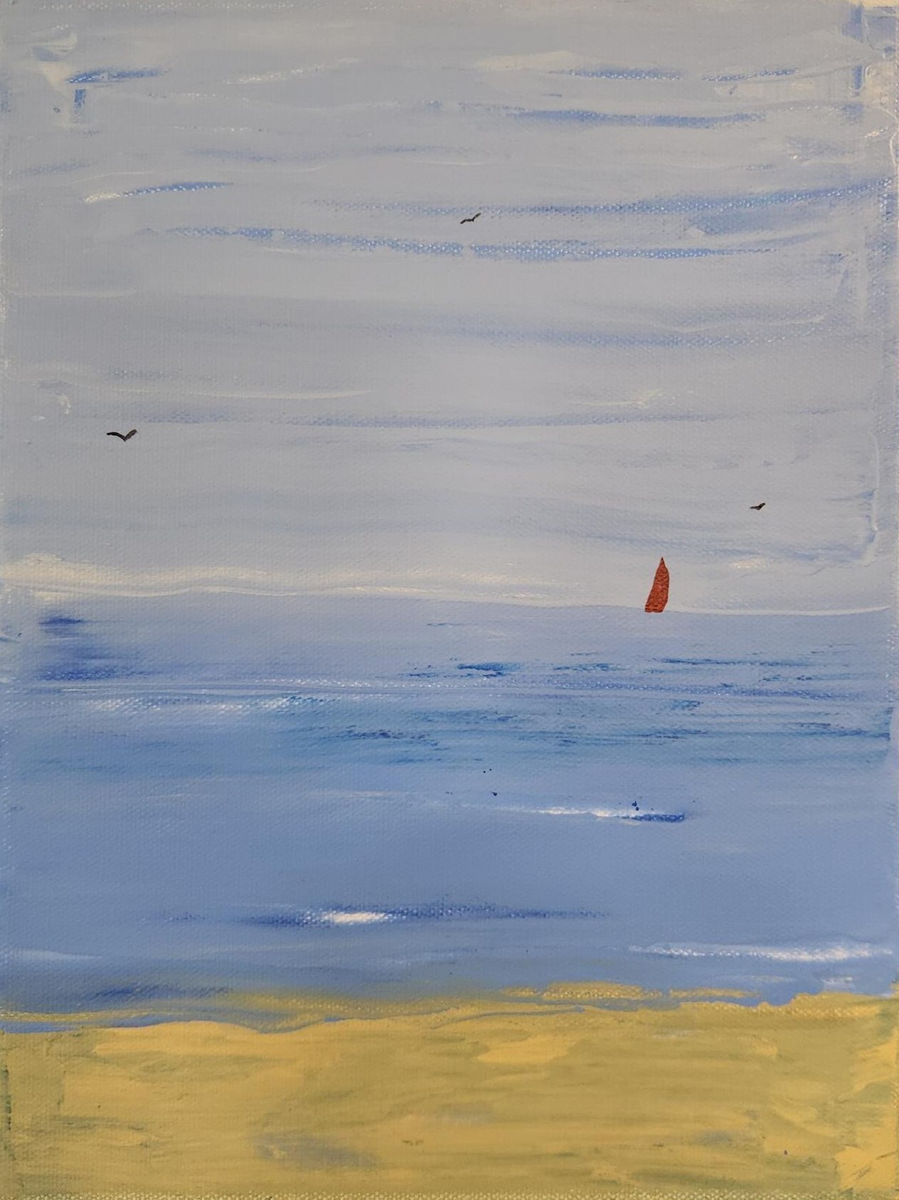 James Wolstenholme, Red Sail on the Horizon, Acrylic,12×9, $100