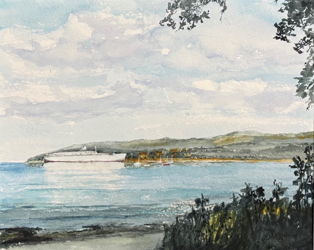 Ria McNamara, Million Dollar View at Colt State Park, Watercolor, 8×9, $250