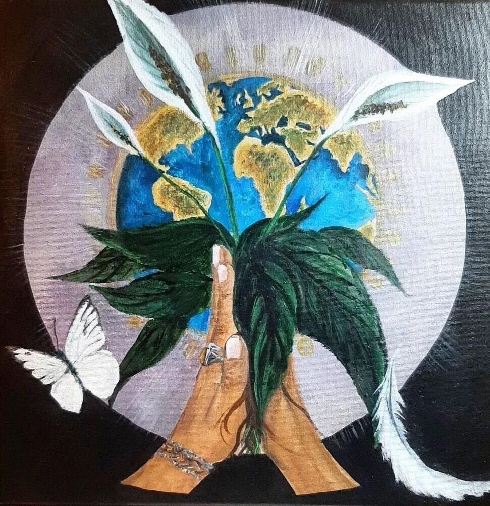 Kim DePina, Planting Some Peace, Acrylic, 14×14, $88