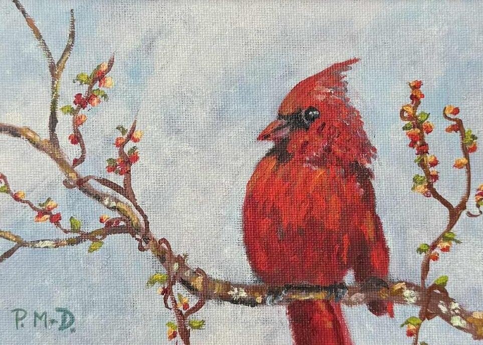 Paula DeSano Santos, Cardinal and Bittersweet, Oil, 5×7, $55