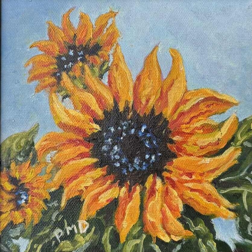 Paula DeSano Santos, Happy Sunflowers, Oil, 6×6, $50