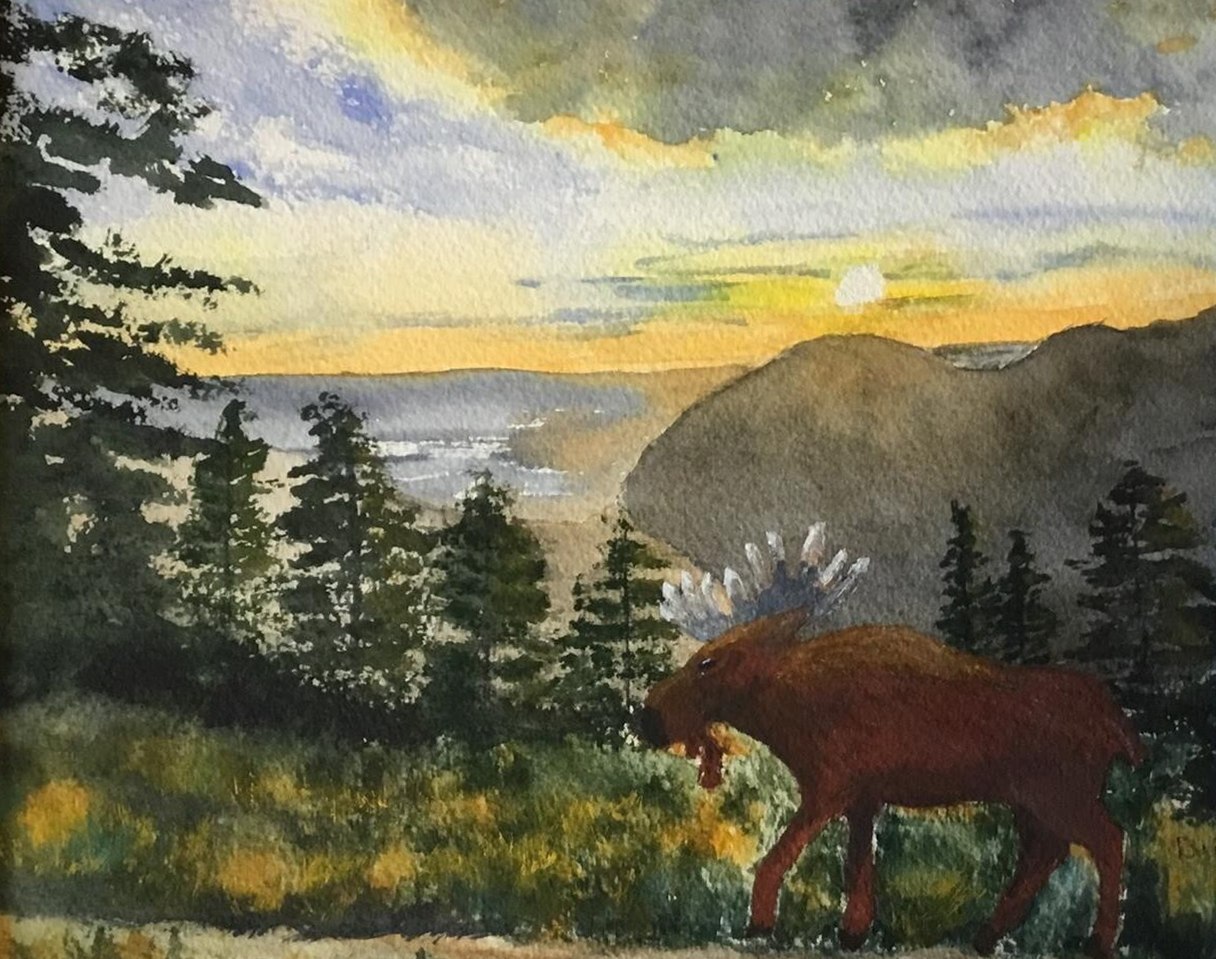 Debra Duggan, Moose Sighting, Watercolor, 11x14x1, $125