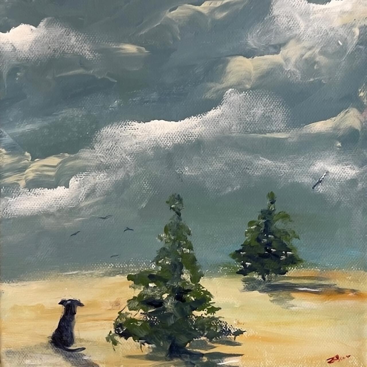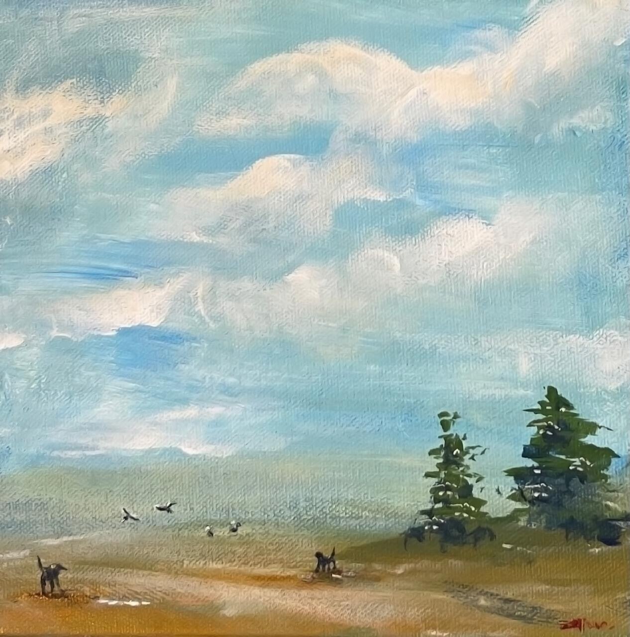 Erin Howe, Pines in the Dunes, Acrylic, 8×8, $225