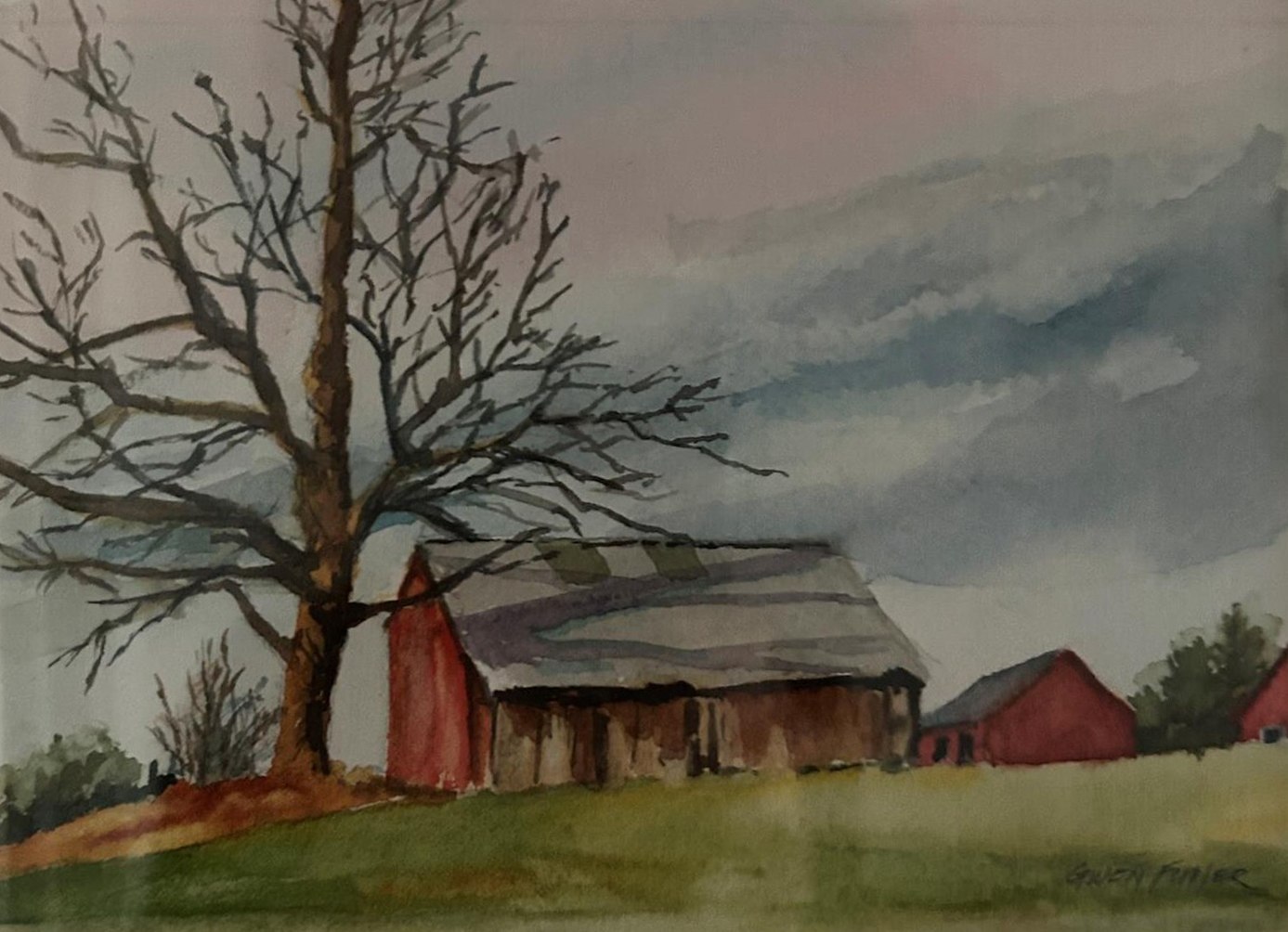 Gwen Fuller,Old Barn in Fall,Watercolor, 11×13, $175