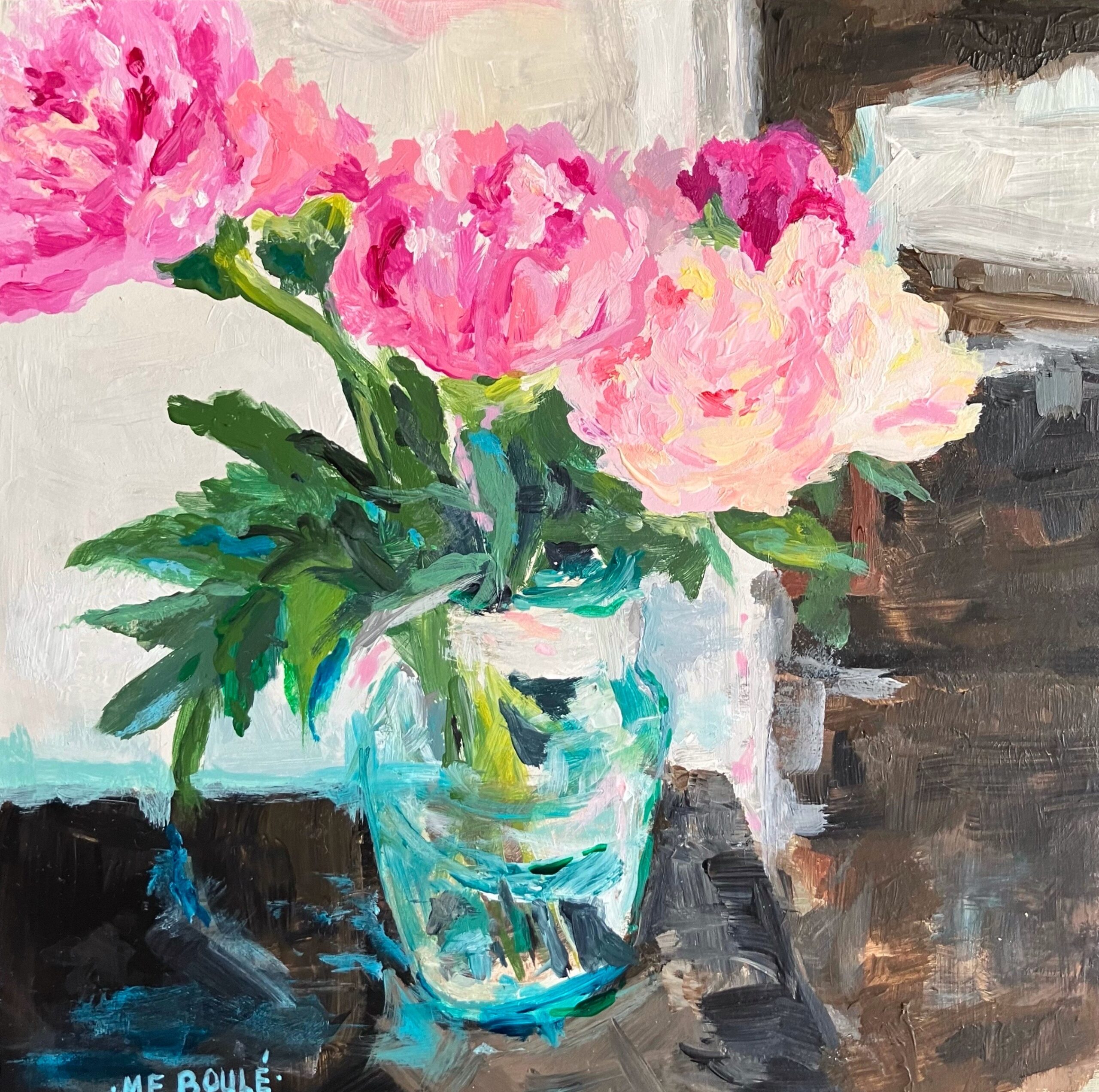 Mary Boule Mainella, Pink Peonies, Acrylic, 8×8, $150