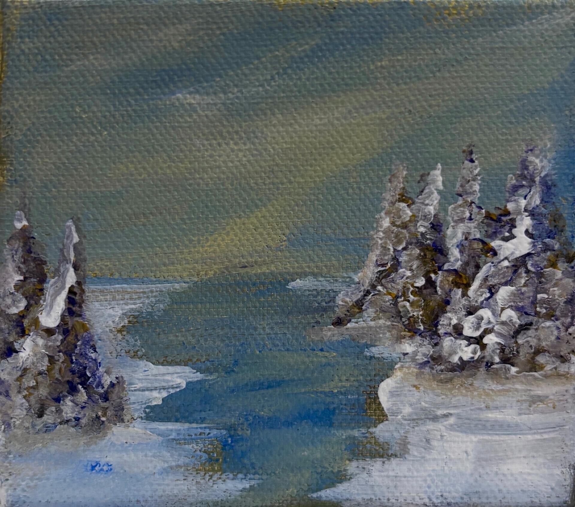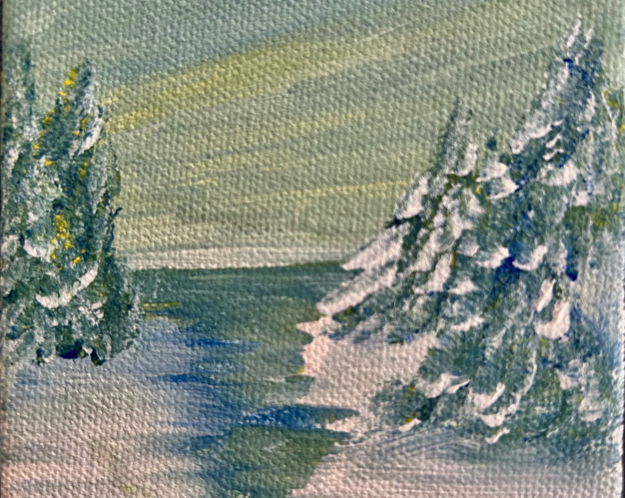 Jane Lavender,Winter Wonderland,Acrylic, 3×3, $40, SOLD