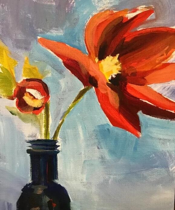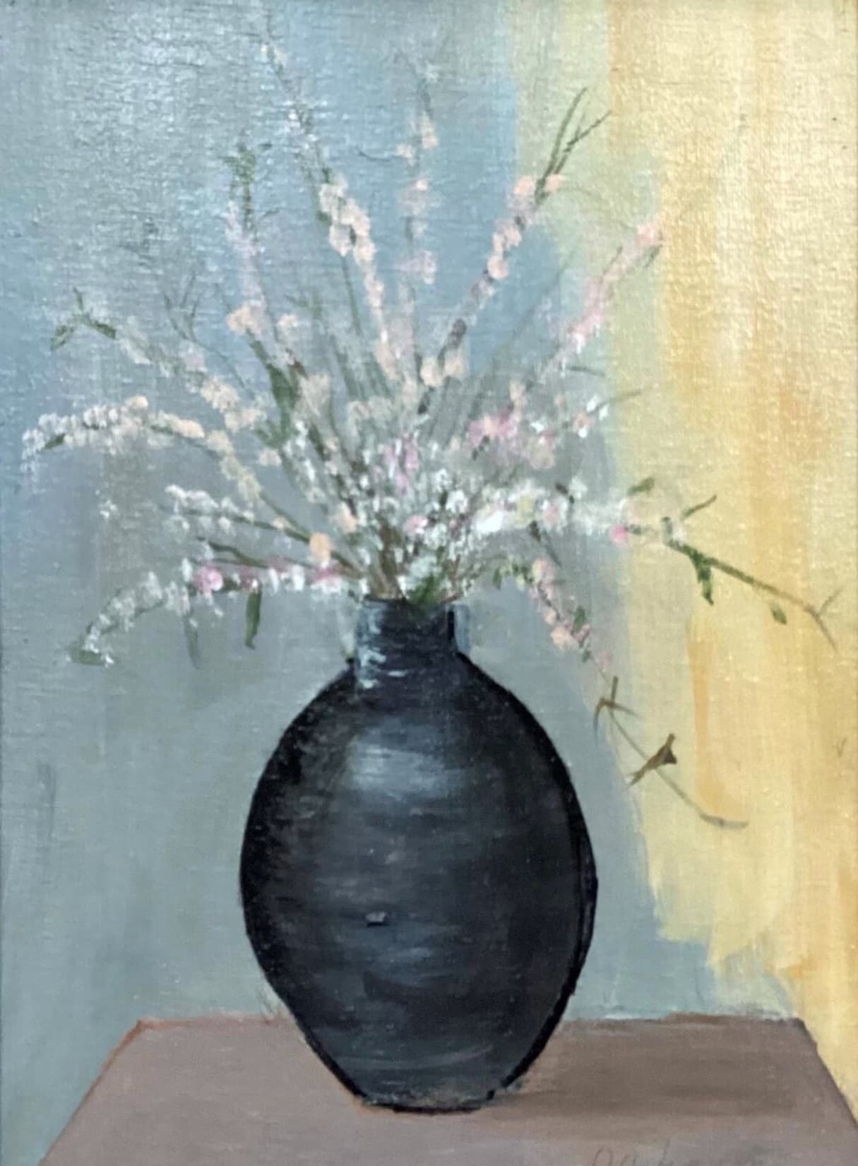 Jacqueline Johnson, Black Pot with Flowers, Acrylic,12×9, $175
