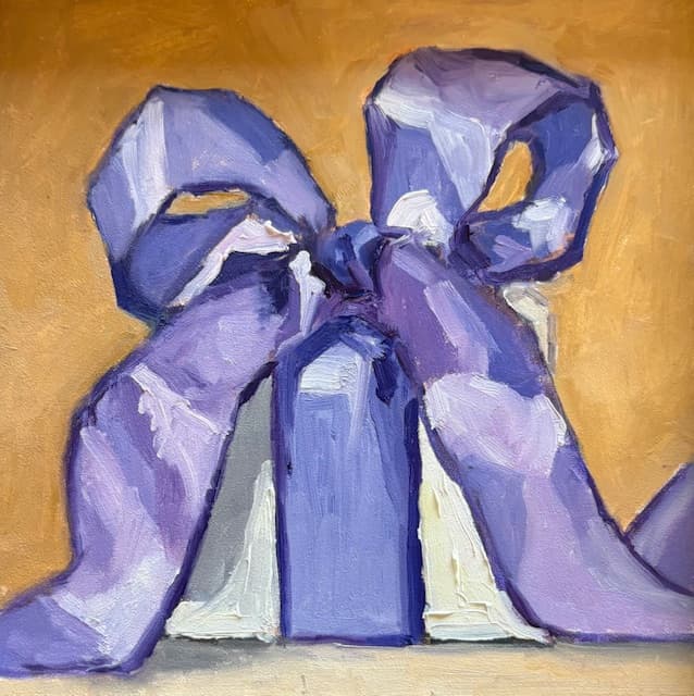 Kathleen Tirrell, Purple Bow , Oil, 7×7, $150