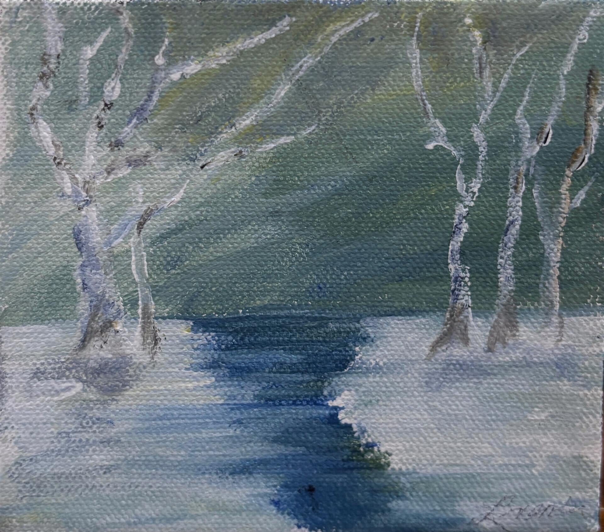 Sheila Clark Lundy, Winter Storm,Acrylic, 4x6x1, $125