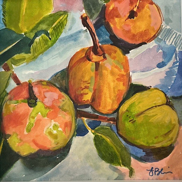 Lisa Bliss, Still Life with Four Pears, Watercolor, 7×7, $95
