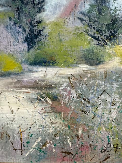 Jane Lavender,River Runs Through It,Acrylic, 4×4, $40