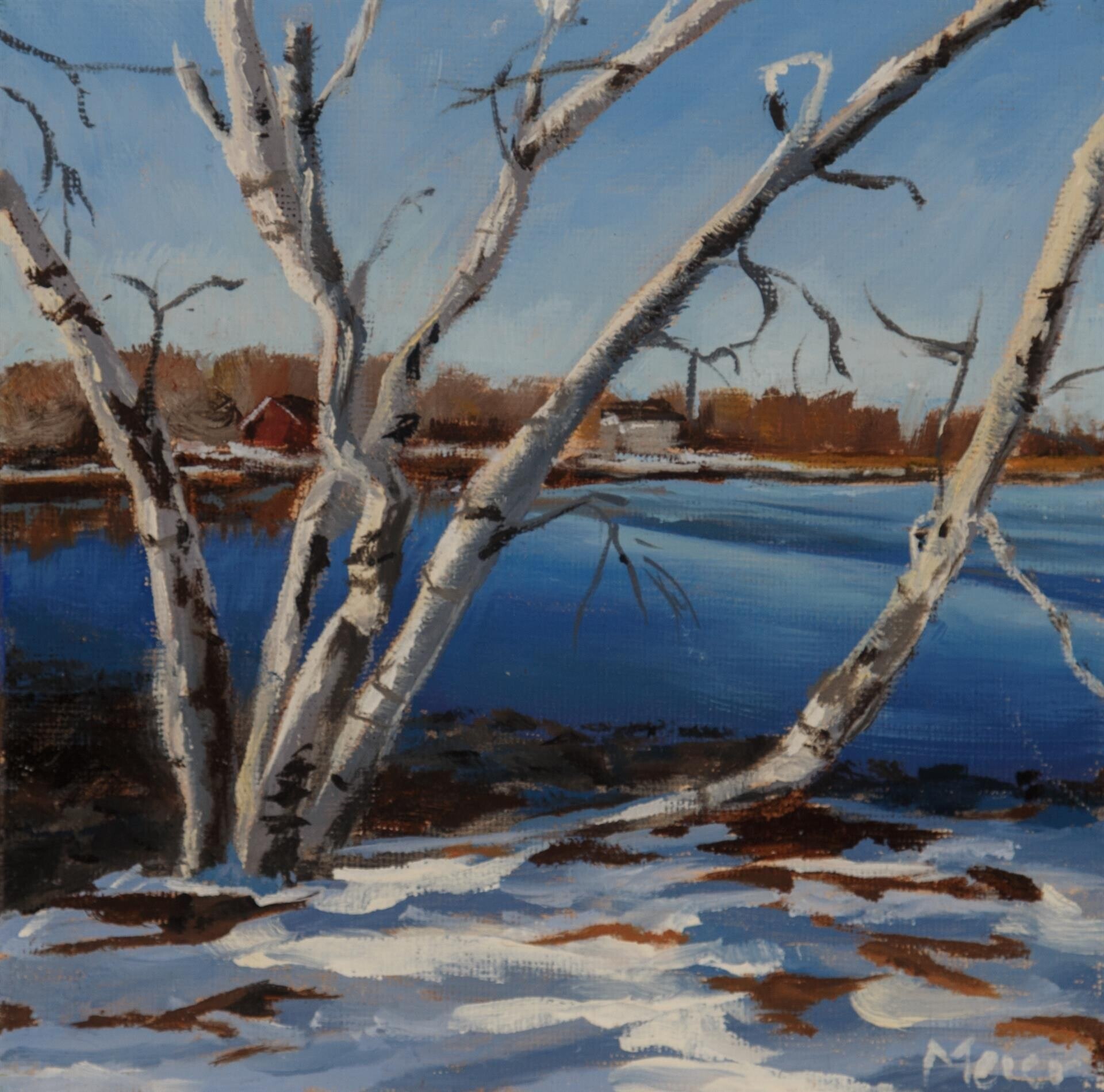 Barbara Meier, Winter Birch Tangle, Oil, 6×6, $175