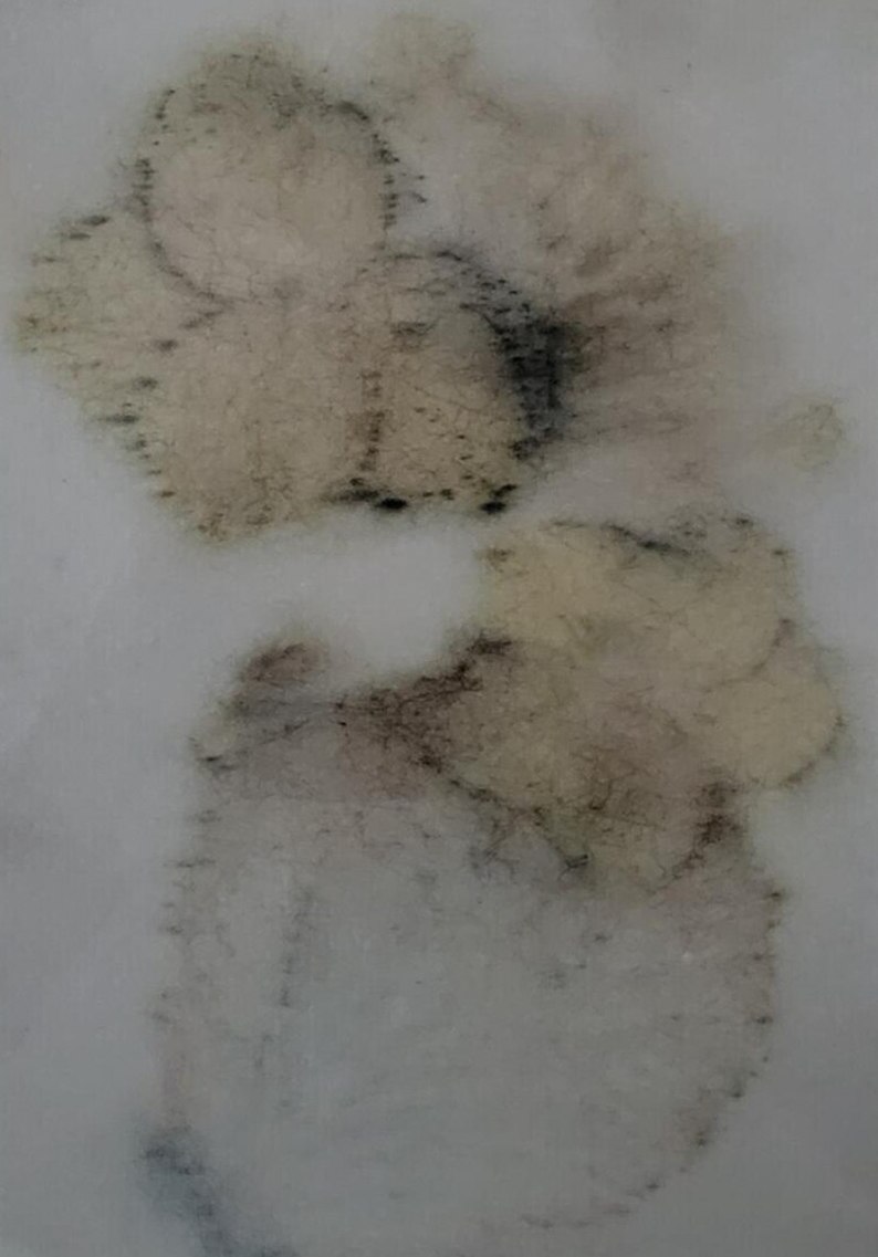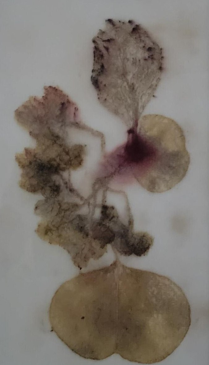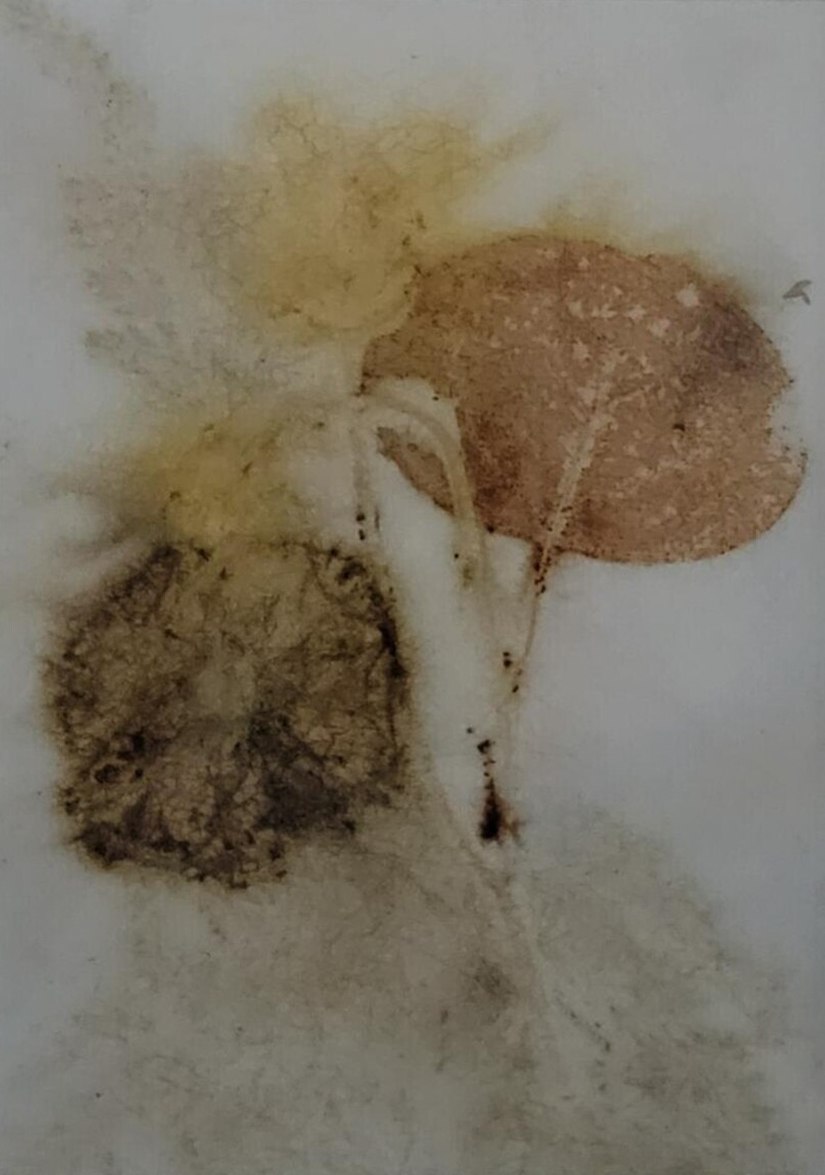 Shirley Metcalf, Foggy, Ecoprint on Silk, 14.5×11.5, $130