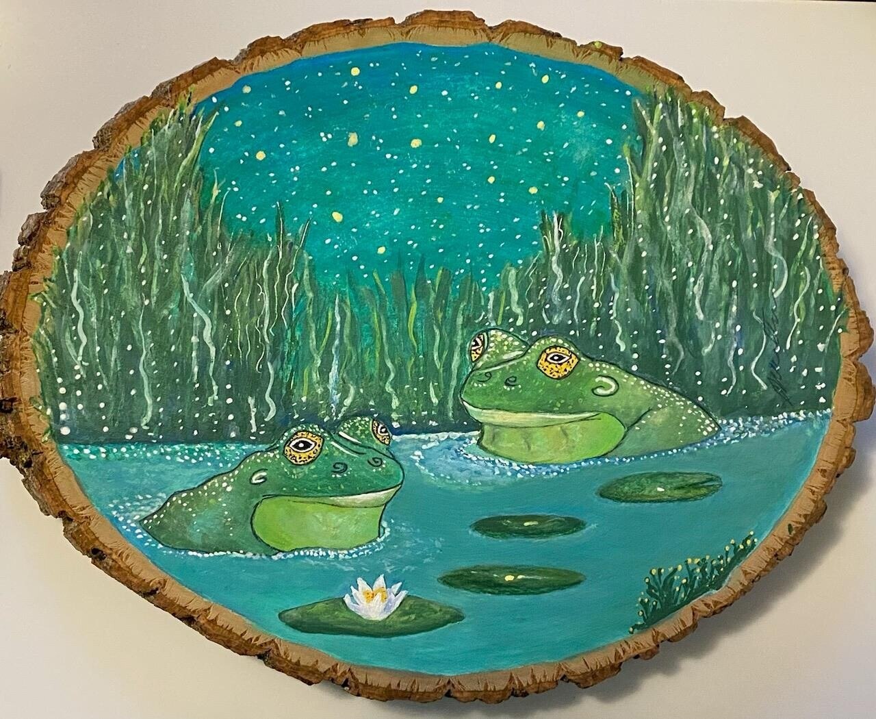 Peggy Matheson, Moonlight Frogs, Acrylic, 8x11x1, $80