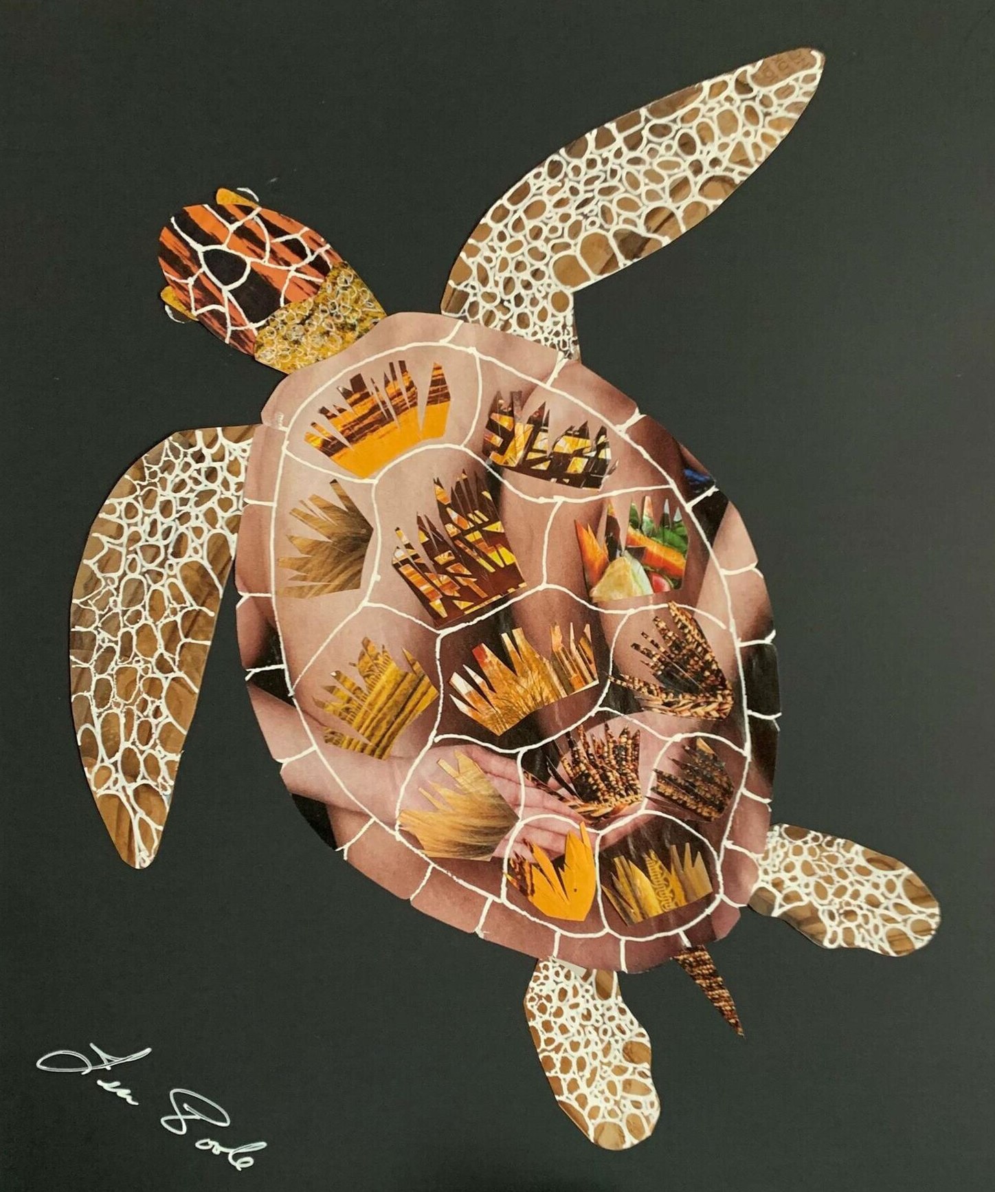 Jean Poole, Brown Sea Turtle, Paper Collage, 11.5x14x1, $100, SOLD