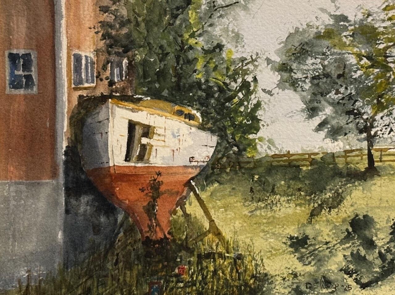 David Sharp, Boat House, Watercolor, 9.5×12, $75
