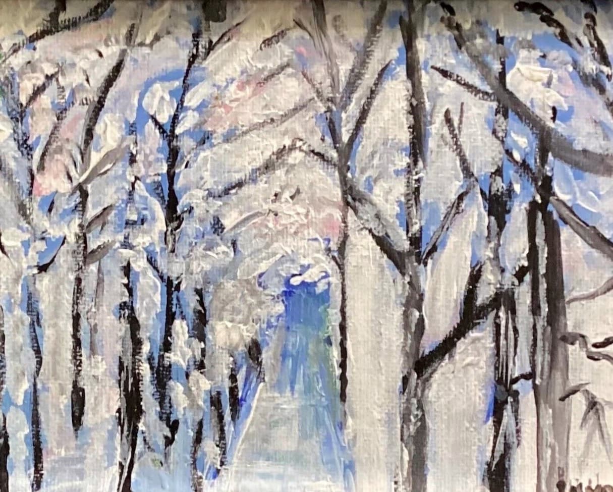 Jane Lavender, Winter Forest, Acrylic, 4×4, $40