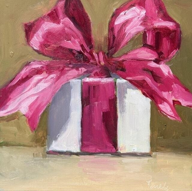 Kathleen Tirrell, Pink Bow, Oil, 6x6x1.4, $150, SOLD