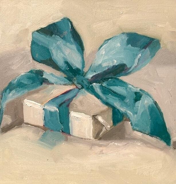 Kathleen Tirrell, Turquoise Bow, Oil, 6x6x1.4, $150