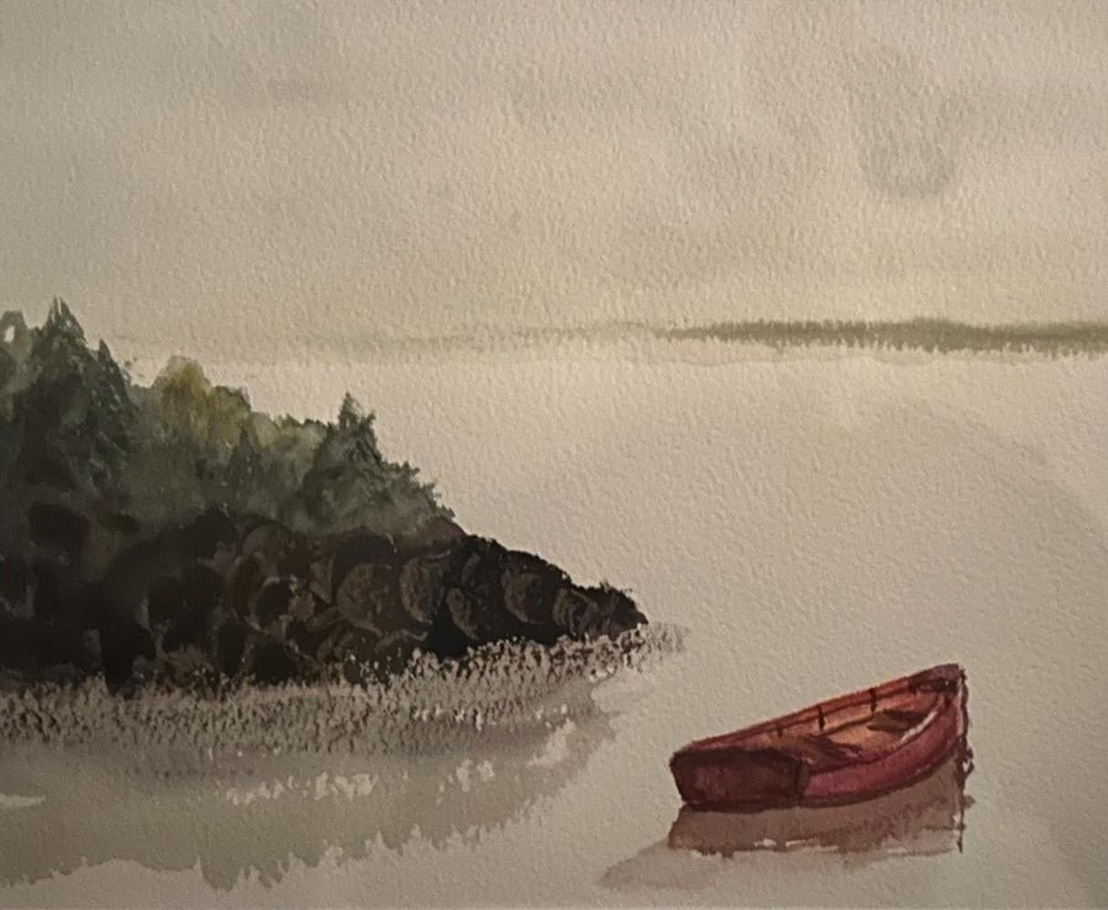 Laura Wilson, Red Dory, Watercolor, 11×14, $125, SOLD